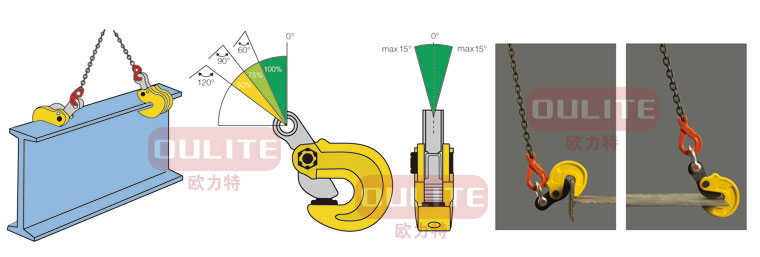 .單只翻轉鉗允許起吊的最大重量為額定載荷,吊裝作業(yè)中可單只使用,水平吊運時必須加橫梁